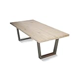 Stabiler groÃer Couchtisch aus massiver Eiche. Das Holz ist naturbelassen und geseift / gebürstet. Der Cochtisch verfügt über ein aussergewöhnliches Gestell aus Edelstahl.