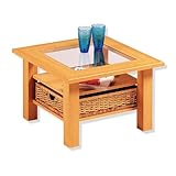 Quadratischer Couchtisch mit praktischem Ablagekorb und hübscher Glaseinlage- Buche Nachbildung